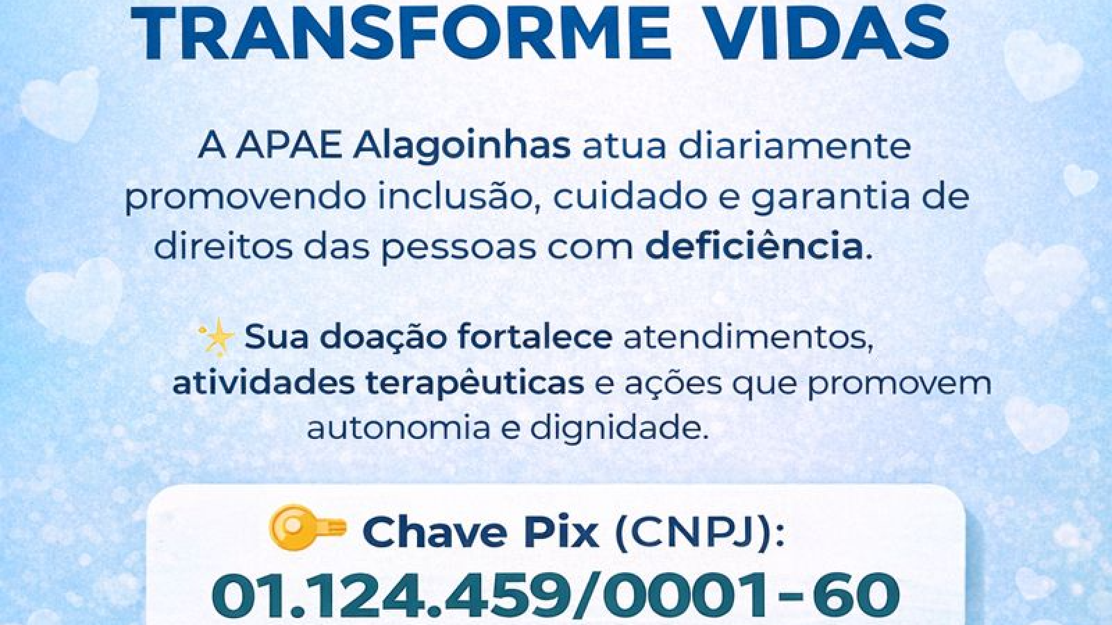 A APAE Alagoinhas atua diariamente promovendo inclusão, cuidado e garantia de direitos das pessoas com deficiência.